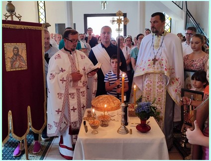 У храму светих апостола Петра и Павла надлежни парох јереј Драгиша Цвјетковић служена је свету литургију. Мало стадо Христово окупљено се у име Божије и име Светог Саве. Након Свете Евхаристије јереј Драгиша је преломило славски колач.