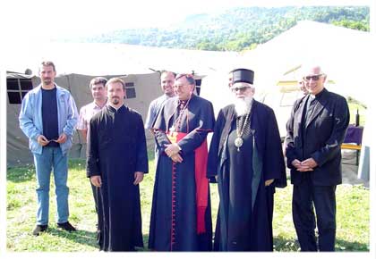Високопреосвећени Митрополит је, захваљујући се организаторима на позиву и поздрављајући учеснике кампа поручио да је слобода, човјеку дарована од Бога, основна тајна живота, али да модерни човјек Бога, умногоме, доживљава као непријатеља слободе, цитирајући модерне мислиоце који су креирали овакву данашњу свијест. Потом је додао Јеванђеље тражи правду у међуљудским односима и у стварању људске заједнице. Тражи укидање глади и вапијуће неправде у трећем свијету, и с друге стране буржоаске саможивости. Не ради се о одмјеравању или ограничавању комфора, него о томе да човјечанство буде отворено за Божије присуство, за чудо Његовог Оваплоћења, чији циљ није просто срећан човјек, него блажен човјек, који је сазријевао на сунцу самих Христових блаженстава. Међутим, широм свијета, под крилатицом Бог је умро, отвара се пут насиљу, које жели да сроза љубав Божију на људска мјерила. Насупрот овој заблуди, придружујемо се Светим Оцима у ријечима да љубав као Света тајна братства значи: примити другога кроз Христа. У Христу и са Христом присутним у души, омогућено нам је да један у другоме препознамо брата. (Текст обраћања у цјелини) Овогодишњи камп мира, под називом Школа мира, окупио је стотињак младих римокатолика, гркокатолика и православних из Босне и Херцеговине, Њемачке, Украјине, Бјелорусије, Румуније, Литваније, Пољске, Мађарске и Хрватске, који заједничким радом, молитвом и размјеном искустава желе допринијети да помирење, мир и солидарност ојачају заједништво Европе. 13.08.2006