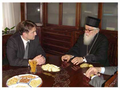 Пожељевши својој гошћи срдачну добродошлицу, Митрополит Николај изразио је наду да ће се, сљедујући вјековном пријатељству Срба и Француза, сарадња између Митрополије дабробосанске и Амбасаде Француске успјешно наставити и још више побољшати. Госпођу Берно интересовало је мишљење Митрополита о општем стању у Босни и Херцеговини, успостављању трајног помирења међу народима, раду Међурелигијског вијећа, повратку избјеглих и расељених, те реституцији национализоване имовине. Господин Митрополит је одговорио да је опште стање у Босни и Херцеговини побољшано у односу на стање које је било прије десет година, захваљујући и помоћи међународних организација и страних држава, али и добром вољом домаћих носиоца власти, као и свих житеља ове земље. Међутим, данас би политичари у Босни и Херцеговини морали имати више разумјевања и радити на истинском помирењу и изградњи добре воље међу народима, јер ће трајни мир заживјети у овој земљи, само ако га сами изградимо. Да би достигли тај циљ, свако од нас мора жртвовати неки свој политички интерес, а не, као што се то данас чини, да политичари једног народа желе бити "капа свему". Ствар је у томе што је данас политика веома прљава и постала је неко друго "еванђеље", а истинско Христово Еванђеље покушава се потиснути. Митрополит је оцијенио да је Српска православна црква увијек изграђивала и данас изграђује мир и добру вољу међу људима, по Христовим ријечима да су "блажени они који мир граде, јер ће се синовима Божјим назвати". То је и главни разлог што наша Црква учествује у раду Међурелигијског вијећа, чији је рад високо цијењен у земљи и у свијету, јер се рад овог Вијећа заснива на ономе што је свима заједнички интерес, првенствено помирење и превазилажење конфликата, и труди се да буде примјер за углед свима. Говорећи о повратку избјеглих и расељених, Високопреосвећени Митрополит је нагласио да се из Дабробосанске митрополије иселило 280.000 вјерника, и то из економски најбољег дијела Епархије, Сарајева и Средње Босне, који припадају Федерацији Босне и Херцеговине. Данас се људи не враћају на своја огњишта, углавном због економске несигурности и тај недостатак младих највише се осјети у храмовима наше Цркве. Што се тиче реституције национализоване имовине, Митрополит Николај је изразио незадовољство због чињенице што се ни након 66 година откако је зграда Богословије у Сарајеву узурпирана, у институцијама Босне и Херцеговине не чини ништа да се та неправда исправи и зграда преда српској Цркви као правом власнику. 15.01.2007 Овом приликом прочитана је Митрополитова новогодишња порука младима. 09.01.2007