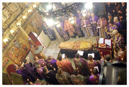 Владика Николај ће на Велики Петак, 2. априла, у храму Светог Пророка Илије на Сокоцу, у 17.00 часова служити Вечерње са изношењем Плаштанице. На Велику Суботу, 3. априла, високопреосвећени ће у храму Светог Василија Острошког и светог Петра Дабробосанског у богословским школама у Фочи служити Свету архијерејску литургију. Свету архијерејску литургију господин Николај ће на Васкршњи понедјељак, 5. априла, служити у храму Светог Пророка Илије на Сокоцу, а на Васкршњи уторак, 6. априла, у храму Успења Пресвете Богородице у Палама. Митрополит Николај ће свете архијерејске литургије служити и на Велики Понедјељак, 29. марта, у манастиру Светог Саве у Горњој Лијесци код Вишеграда, Велики Уторак, 30. марта, у манастиру Успења Пресвете Богородице у Добруну, Велику Сриједу, 31. марта, у манастиру Вазнесења Господњег у Вардишту, Велики Четвртак, 1. априла, у храму Преображења Господњег у Сарајеву, те на Томину недјељу – мали Васкрс, 11. априла, у манастиру Успења Пресвете Богородице у Добруну. 28.03.2010 17.03.2010