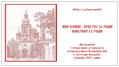 У народном дому манастира Успења Пресвете Богородице у Добруну код Вишеграда, у суботу 25. јануара, одржана је промоција фототипског издања сарајевског преписа Законоправила Светог Саве, које је уз благослов Његовог високопреосвештенства митрополита дабробосанског господина Николаја објавила Издавачка кућа Митрополије дабробосанске „Дабар“. 29. 01. 2014. Празник Светог Саве, првог архиепископа и просвјетитеља српског свечано је прослављен на подручју Чајнича. 29. 01. 2014. У храмовима на подручју Црквене општине и парохије соколачке, у понедјељак 27. јануара, свечано је прослављен, литургијски као и низом пригодних манифестација, празник Светог Саве, првог архиепископа и просвјетитеља српског. 28. 01. 2014. Храм Светог Саве на Врелу Босне у Блажују прославио је, у понедјељак 27. јануара, своју крсну славу Светог Саву, првог архиепископа и просвјетитеља српског, у присуству великог броја вјерника из Источног Сарајева и других градова Републике Српске, који су прије рата живјели на подручју парохије блажујске. 28. 01. 2014. Празник Светог Саве, првог архиепископа и просвјетитеља српског, свечано је прослављен у Саборном храму Рођења Пресвете Богородице у Сарајеву, служењем Свете литургије, пригодним програмом и подјелом светосавских пакетића. 26. 01. 2014. Благословом Његовог високопреосвештенства митрополита дабробосанског господина Николаја и његовог замјеника Епископа захумско-херцеговачког господина Григорија, у суботу 25. јануара, у Саборној цркви Рођења Пресвете Богородице у Сарајеву, одржана је Вечерња служба са молитвом за јединство хришћана. 23. 01. 2014. Начелник Општине Стари Град Ибрахим Хаџибајрић посјетио је данас Саборну цркву Рођења Пресвете Богородице у Сарајеву гдје је са старјешином протојерејем Бориславом Ливопољцем обишао радове на рестаурације ентеријера цркве. 22. 01. 2014.