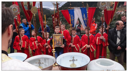 Издавачка кућа Митрополије дабробосанске „Дабар“ организује у суботу, 25. јануара, са почетком у 19 часова, у Народном дому манастира Успења Пресвете Богородице у Дубруну, промоцију фототипског издања сарајевског преписа Законоправила Светог Саве. 22. 01. 2014. На велики хришћански празник Богојављење, у Вишеграду је, код ћуприје на Дрини, четврти пут заредом одржано пливање за Часни крст. 22. 01. 2014. Велики хришћански празник Богојављење прослављен је у храму Успења Пресвете Богородице у Чајничу. 13. 01. 2014. У сусрет радосним празницима Рођења по плоти Господа и Спаса нашега Исуса Христа и просветитеља и учитеља српског Светога Саве, са благословом Митрополита дабробосанског г. Николаја у издању Издавачке кућа Митрополије дабробосанске „ДАБАР“, свјетлост дана угледала је предивна књига попадије Оријане Ливопољац, подједнако намијењена нашим најмлађим читаоцима, а такође и нама одраслима који се, са срцем испуњеним радошћу, присјећају предивних дана детињства... 13. 01. 2014. Велики празник Рођења Господа Исуса Христа – Божић, у уторак 7. јануара, свечано је прослављен у храмовима на подручју Сокоца. 08. 01. 2014. У храмовима Митрополије дабробосанске, у уторак 7. јануара, служењем Светих литургија свечано је прослављен најрадоснији хришћански празник, Рођење Господа Исуса Христа – Божић. 05. 01. 2014. Чланови православне омладине при Саборном храму Рођења Пресвете Богородице у Сарајеву организовали су данас у Источном Сарајеву дружење и подјелу 20 божићних пакетића за лица са потешкоћама у развоју при Удружењу омладине са инвалидитетом и родитеља дјеце са потешкоћама у развоју „Вратите нам осмијех“. 05. 01. 2014. У Саборном храму Рођења Пресвете Богородице у Сарајеву данас је подијељено 50 хуманитарних пакета са основним намирницама за социјално угрожена лица у Сарајеву. Старије вијести Новије вијести