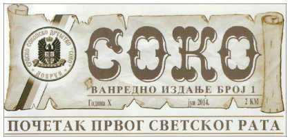 Из штампе је изашао први ванредни број часописа „Соко“, Српског соколског друштва „Соко“ из Добруна, посвећен стогодишњици Првог свјетског рата. 18. 06. 2014. У недјељу Свих Светих, 15. јуна, прослављена је слава храма у Обртићима-Стјеницама код Сокоца. 05. 06. 2014. Његово преосвештенство епископ славонски господин Јован служио је у Недјељу Светих Отаца Првог васељенског сабора, 1. јуна, Свету архијерејску литургију у храму Светог Саве у Фочи. 04. 06. 2014.