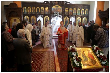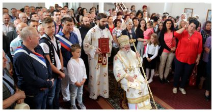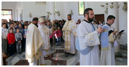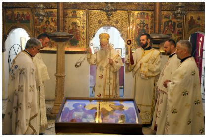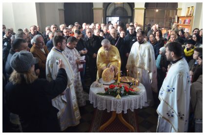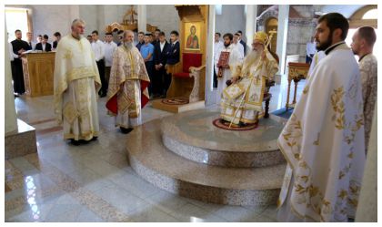 У Евхаристијском сабрању одслужисмо службу Божију у храму Успења Пресвете Богородице, а потом у присуству великог броја наших вјерника, извршисмо велико освећење воде.