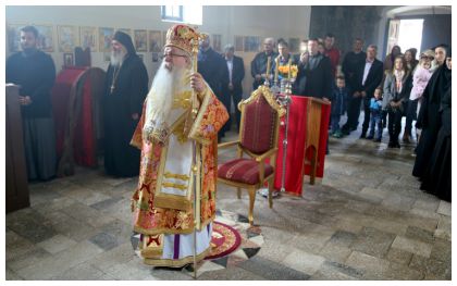 Након свете архијерејске литургије у Сокоцу, митрополит Хризостом је посјетио цркву посвећену Св. Оцима Првог васељенског сабора у селу Ћаварине код Сокоца 08.01.2017.г.