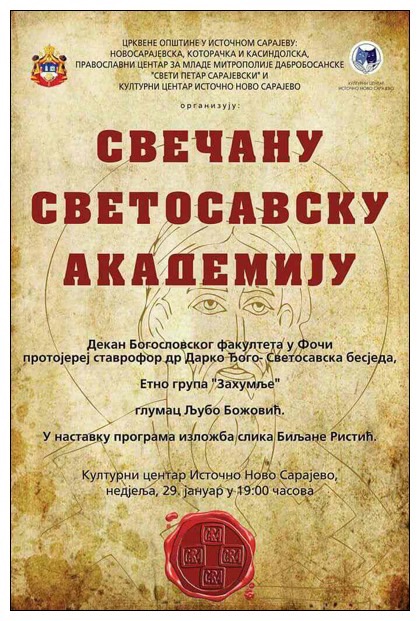 Празник Светог Саве, првог српског Архиепископа и Просветитеља свечано је прослављен у храмовима Митрополије дабробосанске 25.01.2017 НАЈАВА СВЕТОСАВСКИХ АКАДЕМИЈА У МИТРОПОЛИЈИ ДАБРОБОСАНСКОЈ СОКОЛАЦ