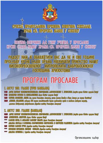 Други дан овогодишњег Васкрса, 29. априла 2019. године, празнички је прослављен у Сокоцу а у храму св. пророка Илије. Свету архијерејску литургију служио је Високопреосвећени Господин Хризостом, митрополит дабробосански уз саслужење: игумана Георгија Станковића, протојереја Мирослава Вујичића и Младена Видаковића, јереја Милана Ђукића и ђакона Будимира Гардовића.