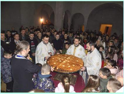 На Бадње вече у храму Светог великомученика Георгија служена је вечерња служба уз налагање бадњака, коју је служио протонамесник Бојан Зекић.