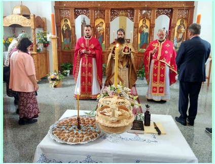Данас, 29. новембра 2022. године, на дан успомене Светог свештеномученика Момчила Челебићког, којег часне мошти почивају у храму Светих Василија Острошког и Петра Дабробосанског у Фочи, свету литургију служио је јереј Ранко Ковач, професор приправник у Богословији ''Свети Петар Дабробосански'' у Фочи. Светој литургији присуствовао је Високопреосвећени господин Хризостом, митрополит дабробосански. Након свете литургије благословљено је славско кољиво, славски колач са вином. Славски колач преломили су служашчи јереј Ранко Ковач и Високопреосвећени митрополит Хризостом.