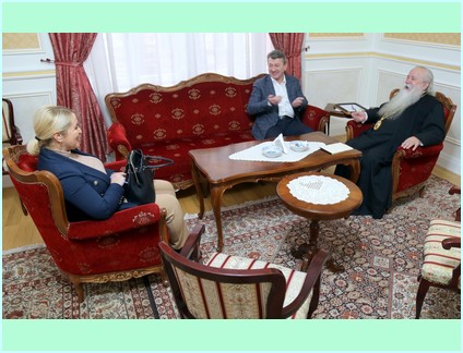 Високопреосвећени митрополит Господин Хризостом пожелио је добродошлицу госпођи Карић, те ју је упознао са историјским развојем митрополије Дабро-босанске и тренутним стањем у митрополији.