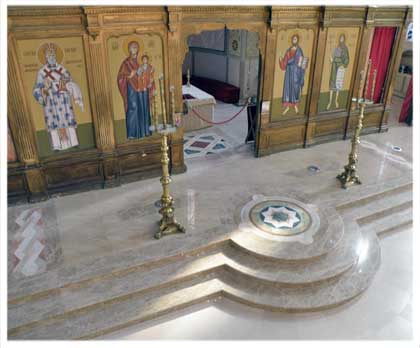 Године 1873. по дозволи руског цара Александра II и са благословом петровградског Светог синода дошао је у Русију архимандрит Сава Косановић да скупља прилоге за довршетак цркве и отплату дугова. Том приликом је посетио Српско подворје у Москви, које је отворено захваљујући труду митрополита Српског Михаила Јовановића. За време боравка у Русији прикупио је 1.870 дуката (114.111 гроша). За овај успех архимандрит Сава је захвалан Нилу А. Попову, професору на Московском универзитету, који га је топло препоручио. Поред новца, из Русије су Новој цркви приложене иконе за иконостас, црквене књиге, утвари и одежде. Иконе су урађене у Сергијевском манастиру, недалеко од Петровграда, трудом архимандрита тога манастира Игњатија. Овај трудољубиви архимандрит је скупљао прилоге од царске породице и других имућних лица које је са пет свештеничких одежди и две мање плаштанице послао на дар Новој сарајевској цркви. За овај свој труд одликован је од кнеза Николе Орденом кнеза Данила.