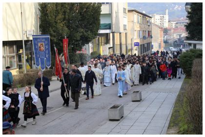 После Свете литургије на којој су присуствовали и причестили се такмичари „пливања за часни крст“ и велики број верника, у свечаној литији кроз центар града Митрополит се са свештенством и верним народом упутио до ћуприје на Дрини где је благословио воду и такмичаре.