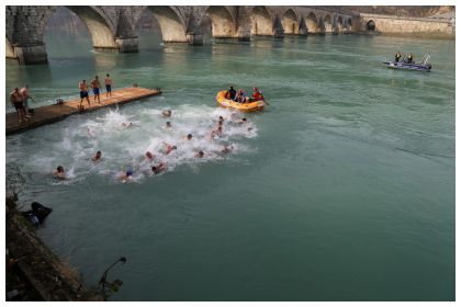 Између тридесет пливача, први до крста је допливао момак из Фоче Марко Милановић коме је Митрополит уручио крст и победнички златни дукат.