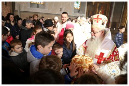 Након свете литургије Високопреосвећени г. Хризостом благословио је славско кољиво и преломио славски колач са једним од многобројних дјечака који су са митрополитом славили Светога Саву. У наставку Високопреосвећени је са свештенством подјелио 200 светосавских пакетића дјеци који су раздрагани пошли својим кућама.