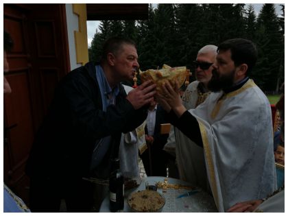 Литургији је присуствовао велики број вјерника.  Послије Свете Литургије уприличена је Литија око храма и ломљење славског колача.