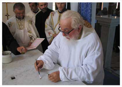 Током чина освећења обављена је трократна литија око храма, а у Часни престо митрополит Николај положио је дио моштију светог великомученика кнеза Лазара косовског. Након освећења храма, господин Николај је служио Свету архијерејску литургију, уз саслужење шест свештеника и једног ђакона Митрополије дабробосанске, те освештао славско жито и преломио славски колач. Кум освештаног обновљеног храма био је Сретен Самоуковић из Рокфорда у САД. Митрополит Николај је на Светој литургији уручио сребрне плакете светог Петра сарајевског, архијерејске грамате захвалности и захвалнице појединцима заслужним за обнову храма.