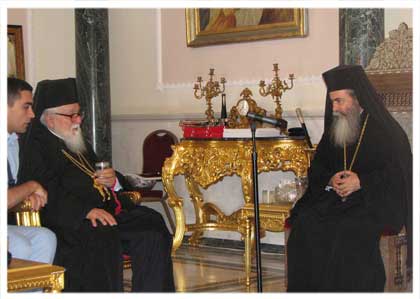 Митрополит Николај са Архиепископом синајским ДамјаномАрхиепископ Дамјан истакао је да ово прва већа посјета представника СПЦ његовој архиепископији.