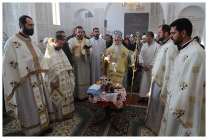 10.12.2017. МИТРОПОЛИТ ХРИЗОСТОМ НА РАВНОЈ РОМАНИЈИ Данас у 27. недјељу по Духовима, 10. децембра 2017. године, на дан успомене св. мученика Јакова Персијанца и светог Јакова Ростовског, Његово Високопреосвештенство г.г. Хризостом, митрополит дабро-босански, служио је свету арх. литургију у саборном храму св. великомуч. Георгија истоименог манастира на Равној Романији. Са Високопреосвећеним г.г. митрополитом саслуживали су: протојереј-ставрофор Ненад Тупеша, протојереј Миљан Рађеновић, јереј Дејан Бакмаз, јереј Дражен Делић и ђакон Будимир Гардовић. На крају свете литургије Високопреосвећени је благословио славско жито и преломио славски колач, а поводом скорашњег имендана настојатеља ове свете обитељи архимандрита Андреја Ковачевића. У бесједи на теми О јачању у Христу Господу (Еф.6,10) Високопреосвећени је истако: ''..... недавно прослависмо велики празник Ваведења Пресвете Богородице у храм Јерусалимски и у његову светињу над светима. Пресвета Богородица осим посвећења да служи Господу би уведена у храм Господњи како би у њему ојачала у Господу, како би се припремила за све оно што је Господ за њу намјенио. ................................ Тако и ми, браћо и сестре, уводећи себе увијек и непрестано у Цркву Христову, у заједницу са Христом Господом, уводимо себе у духовно узрастења и јачање у мјери раста висине Христове. На то нас управо позива и св. апостол. Он на једном мјесту пише ''угледајте се на мене као што се ја угледах на Христа''. Да! Он највећи гонитељ Христа Господа и Цркве његове кроз сусрет са Христом и увођењем у Цркву Христову потруди се више од осталих да постане сасуд божије благодати међу народима. ............................... Чусмо данас из посланице Ефесцима св. ап. Павла како он позива ефешане да јачају у Христу Господу у јачину силе његове! За разлику од свијета у ком јесмо и у ком живимо гдје се људи овога свијета труде да као некада многобожци ојачају своје тијело и ради тога улажу огромно богатсво, гле нас св. ап. Павле позиван на духовни атлетизам, на духовно узрастање како би стасали у борце који ће се моћи супроставити свим поглаварствима и властима ђаволским.............''